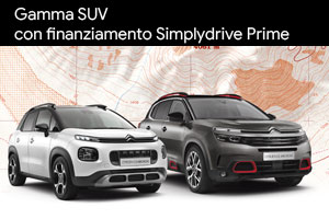 Scopri la gamma di SUV Citroën da Spazio, tua con rate a partire da 140 Euro al mese su Citroën C3 Aircross se aderisci al finanziamento SimplyDrive Prime.